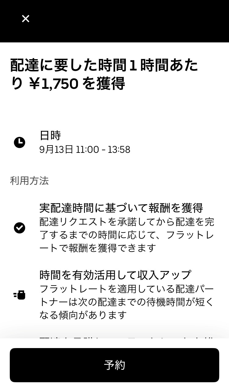 今までのように1件ずつ報酬金額が変わるのではなく、時間あたりの金額が固定されていて、リクエスト受託から配達完了まで報酬が発生するシステムです。