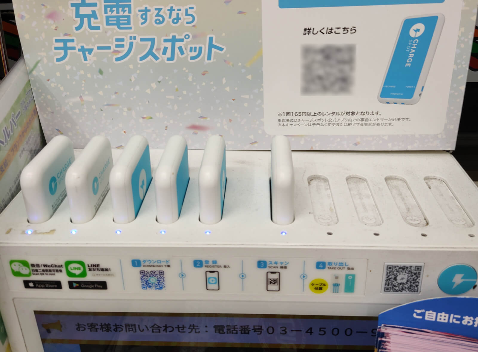駅やコンビニ、飲食店などで水色のバッテリースタンドを見たことがないでしょうか?あれがChargeSPOTです。